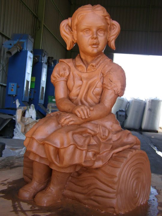escayola, a veces barro, y hoy en día sobre todo poliéster con fibra de vidrio, como el caballo. Una vez obtenidas todas las piezas se ensamblan y así conseguimos la obra.